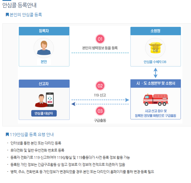 고령자 독거노인 임산부 등 119안심콜서비스 등록 방법