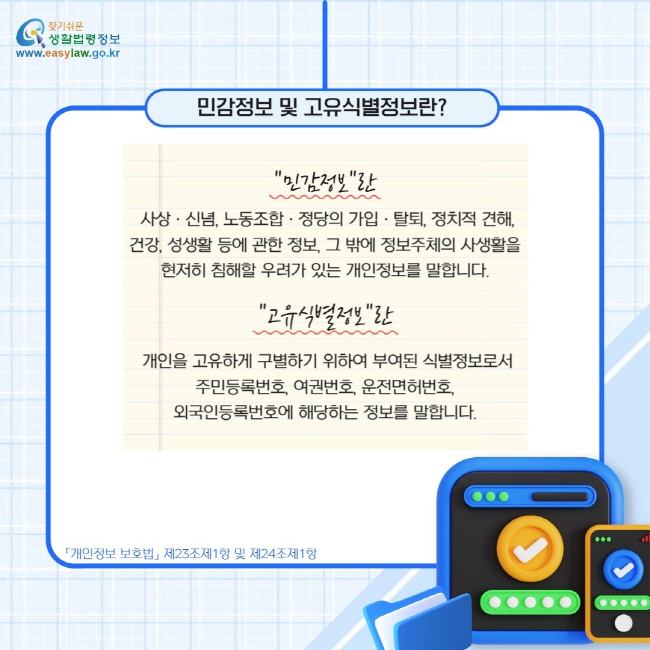 오늘날 우리는 다양한 온라인 서비스와 행정 업무를 처리하면서 개인정보를 제공해야 하는 경우가 많습니다. 하지만 모든 개인정보가 동일하게 취급되는 것은 아닙니다. 특히, 민감정보는 일반 개인정보보다 더욱 엄격한 보호를 받아야 하는 정보로 분류됩니다. 이번 글에서는 개인정보 보호법상 민감정보의 개념과 처리 제한에 대해 자세히 알아보겠습니다.