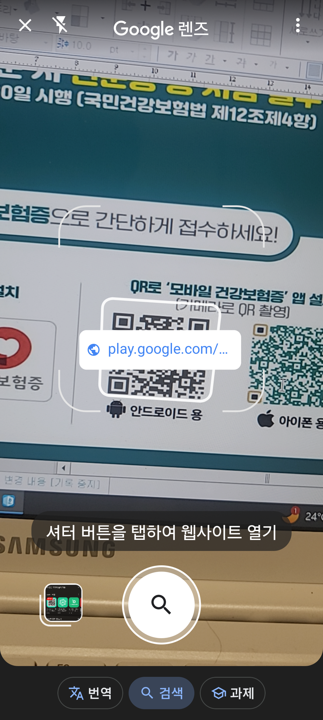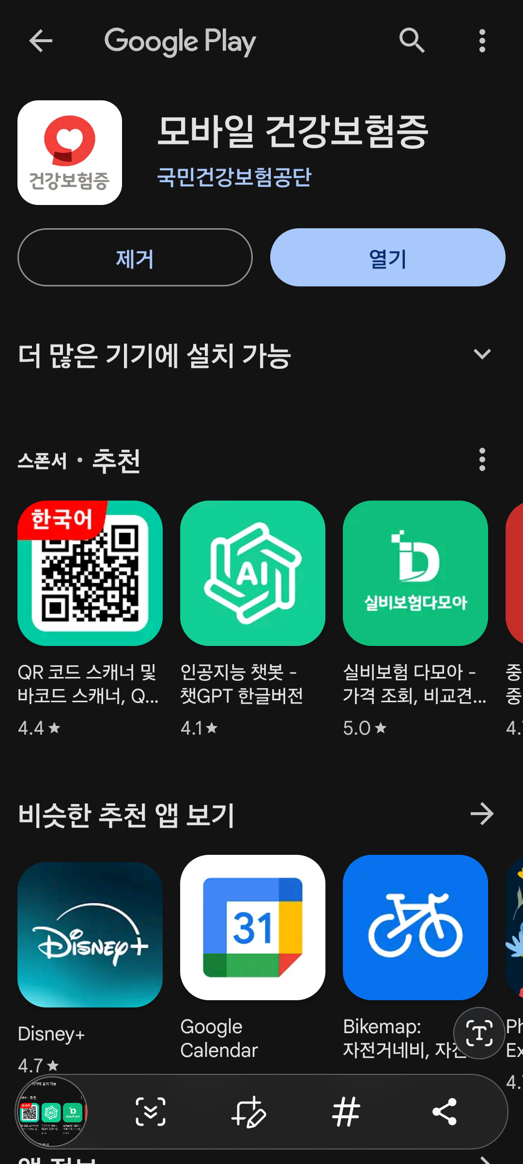 2. 앱을 설치한 후, '건강보험증' 앱을 실행합니다.