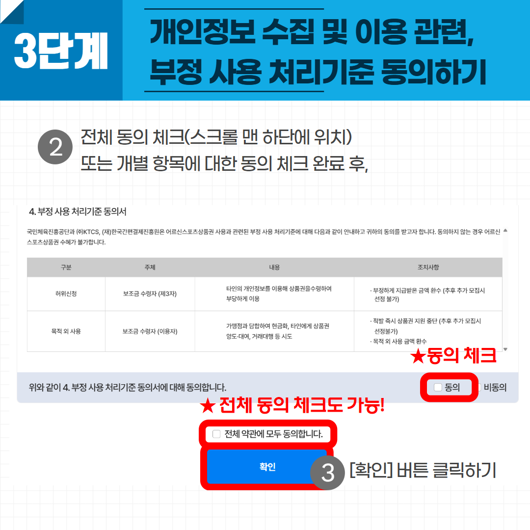 - 개인정보 수집, 이용에 동의(‘전체 동의’ 누르면 편리해요)