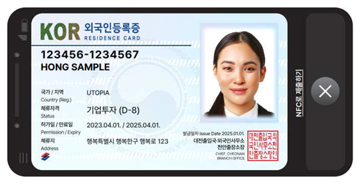 기존 외국인등록증의 정보를 디지털 형태로 변환하여 모바일 기기를 통해 사용할 수 있는 등록증입니다. 대한민국 내에서 신분증으로서 동일한 법적 효력을 가집니다.