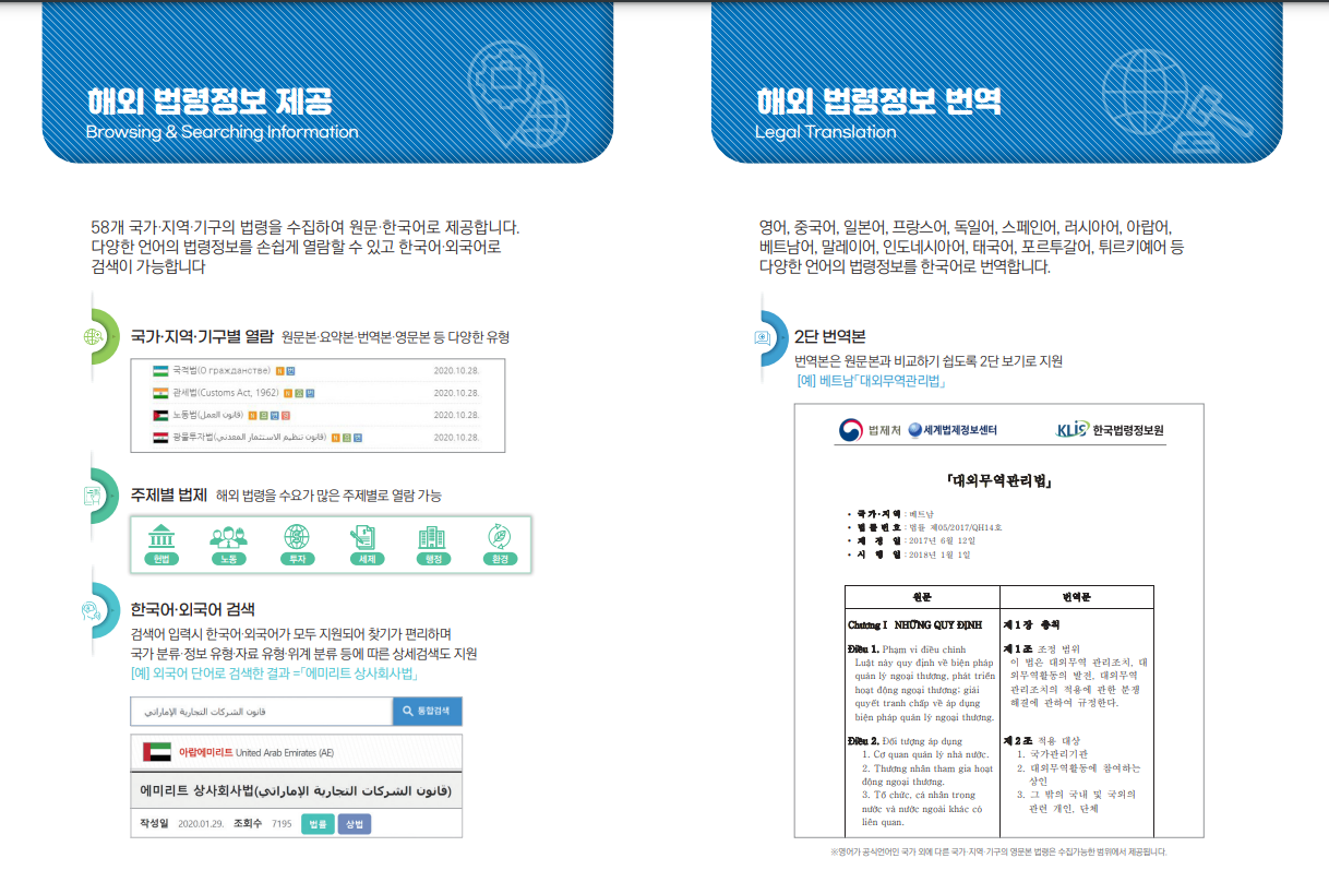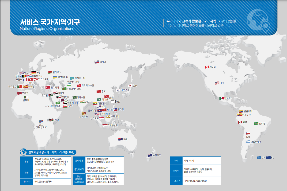 세계법제정보이용센터는 전 세계 다양한 국가의 법률 정보를 제공합니다.