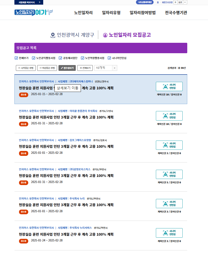 ③ 검색페이지 아래 노인일자리 모집공고 확인