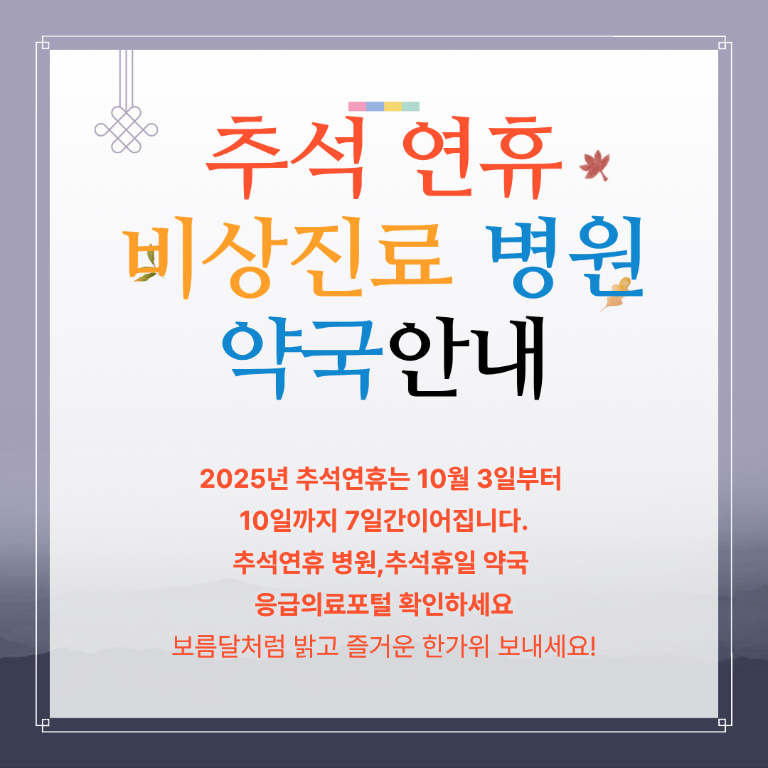 2025년 추석 연휴 비상진료 병원 & 휴일 약국 총정리