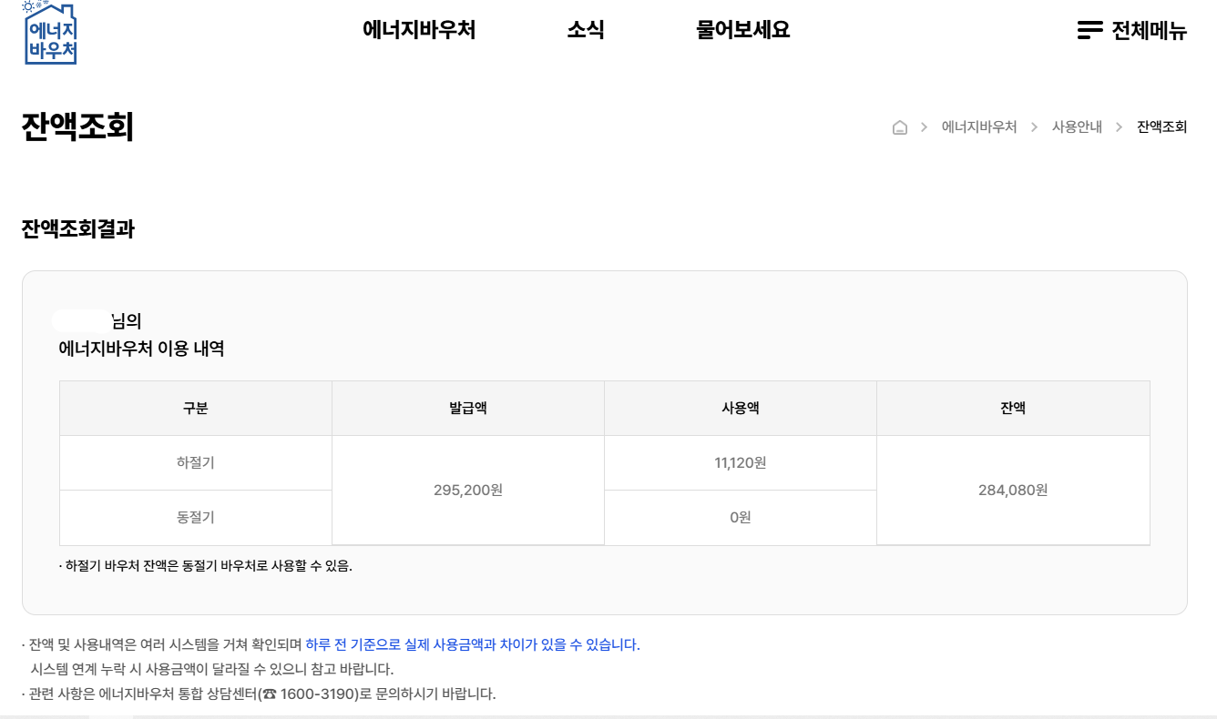 | 겨울철 | 2025.10.13 ~ 2026.05.25 | 실물카드 사용 | 전기, 도시가스, 연탄, LPG, 등유 |